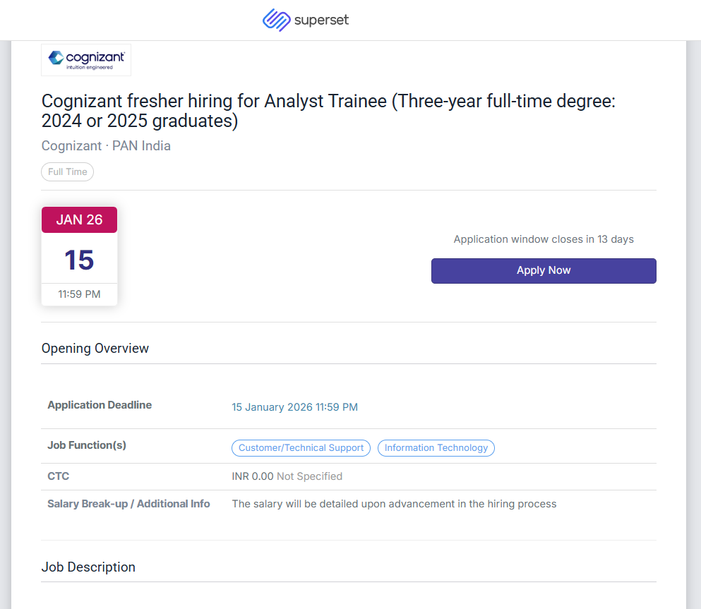 Cognizant Latest New Hiring Drive: Cognizant is seeking 2024 and 2025 graduates of three-year degree programs who are full-time to submit applications for an Analyst Trainee position in all PAN India areas. This position provides an exciting possibility for new graduates to start a new career in the field of technology and operations within an international IT organisation that is known for its innovative and co-operative environment.