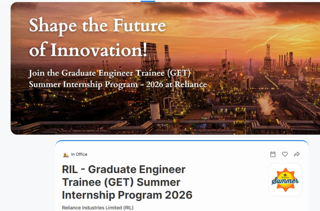 Reliance Big Off Campus Drive: This graduate engineer trainee (GET) summer internship with Reliance Industries Limited offers a chance for engineers who are just beginning their careers to gain practical experience at one of the largest Indian industrial firms. The 8-week program includes classroom instruction along with hands-on experiences, as well as expert guidance from industry professionals.