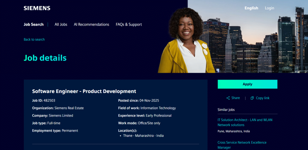 Siemens Big Hiring Drive: Siemens Real Estate is inviting young, energetic and creative minds to take a step towards digital transformation with GAVATAR which is which is the Global Monitoring and Data Analysis Centre located in India. This full-time role gives you the chance to create an impressive career while assisting in the development of smart infrastructure as well as managing real estate.